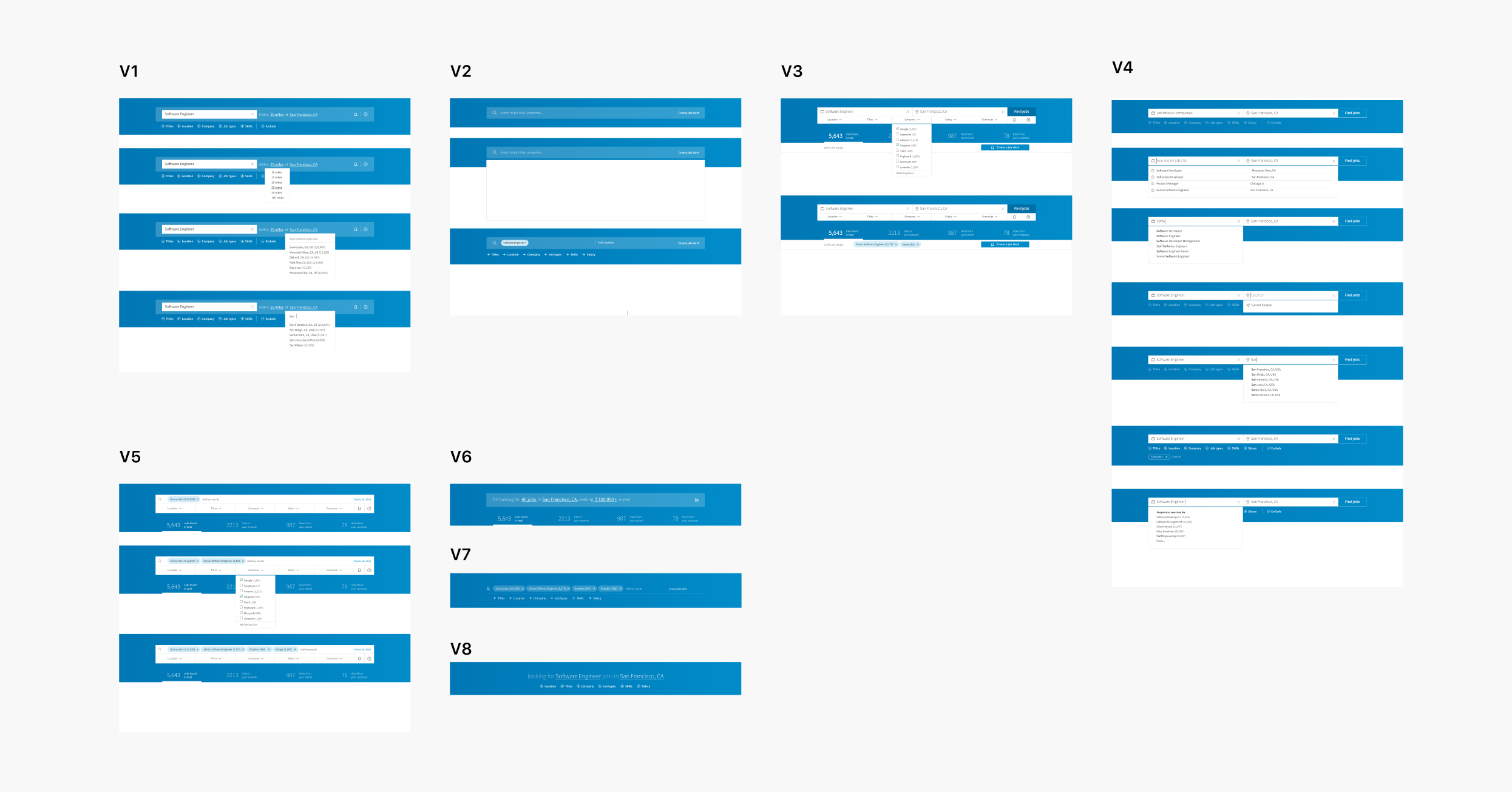 I went to the drawing board and explored numerous search interaction concepts. In the end, we went with a simple version of adding an extra search bar within the search page. The search logic was not fully baked with this concept but it served as an MVP to help us quickly validate our assumption towards the value of location search. As a result, the new location search increased the job click-through rate by ~3%, it was not a lot but a good enough sign for us to move forward.