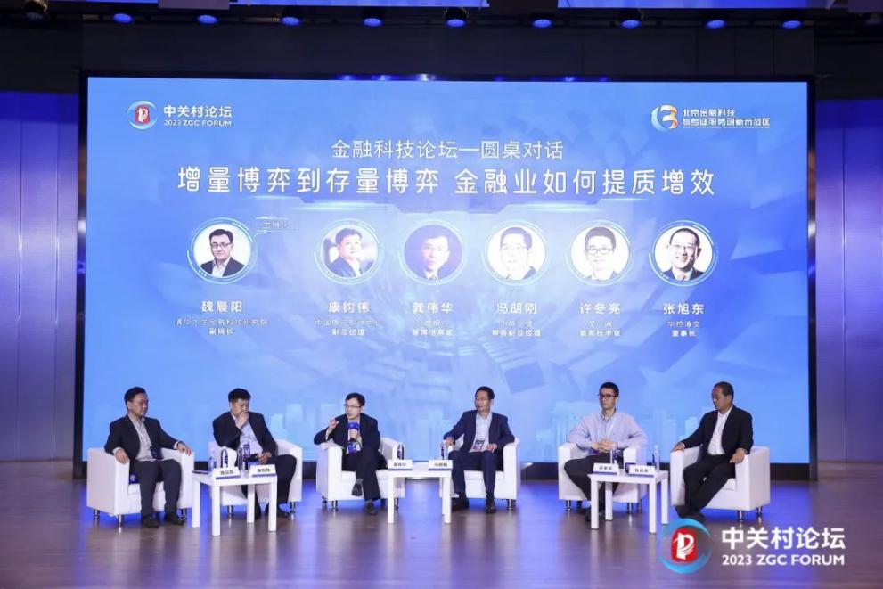 yl23455永利官网金融科技研究院副经理魏晨阳作为圆桌对话主持人,与中国银行软件中心副总经理康钧伟、北京银行首席信息官龚伟华、中电金信常务副总经理冯明刚、度小满首席技术官许冬亮和华控清交董事长张旭东共同探讨金融业的增量到存量的博弈,魏晨阳表示金融业从一个增量增长模式到存量增长模式,是一个非常有意义的且很重大的转折点。当数字化转型已经成为全球共识,如何安全、可持续且有温度的让行业提质增效值得全行业的关注和思考。