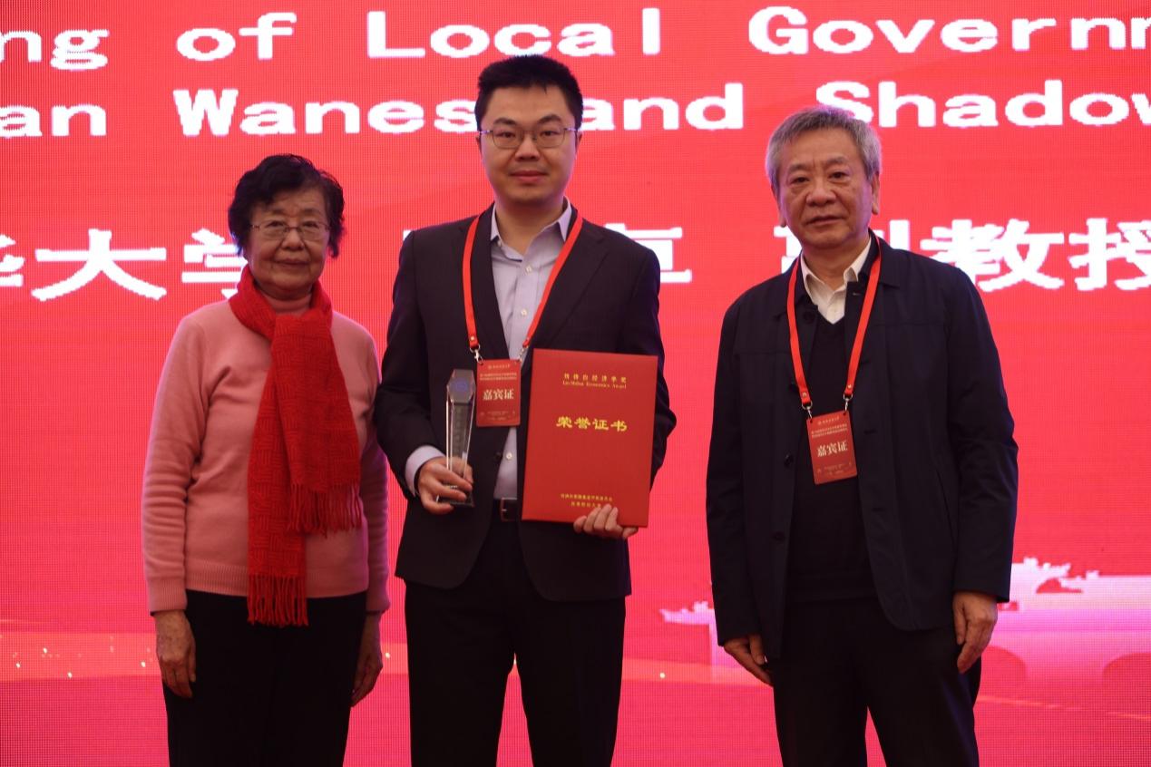 图为陈卓(居中)获颁“第六届刘诗白经济学奖”
