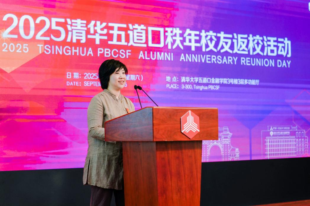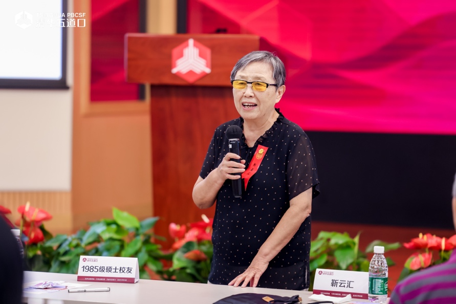 符泽慧的分享从怀念、感恩与传承三个方面展开。她谈到,从课堂上激烈的案例研讨,到运动场上挥洒汗水的拼搏,再到实习实践中的初步探索,五道口为她的职业发展奠定了坚实基础。她特别提到,在从一级市场转向二级市场的职业转型过程中,老师和员工们给予了巨大支持和帮助,体现了五道口人团结互助的精神传统。最后,她表示将传承道口精神和光荣传统,以专业能力服务金融行业高质量发展,并在人工智能与科技革命的新时代中贡献道口人的力量。