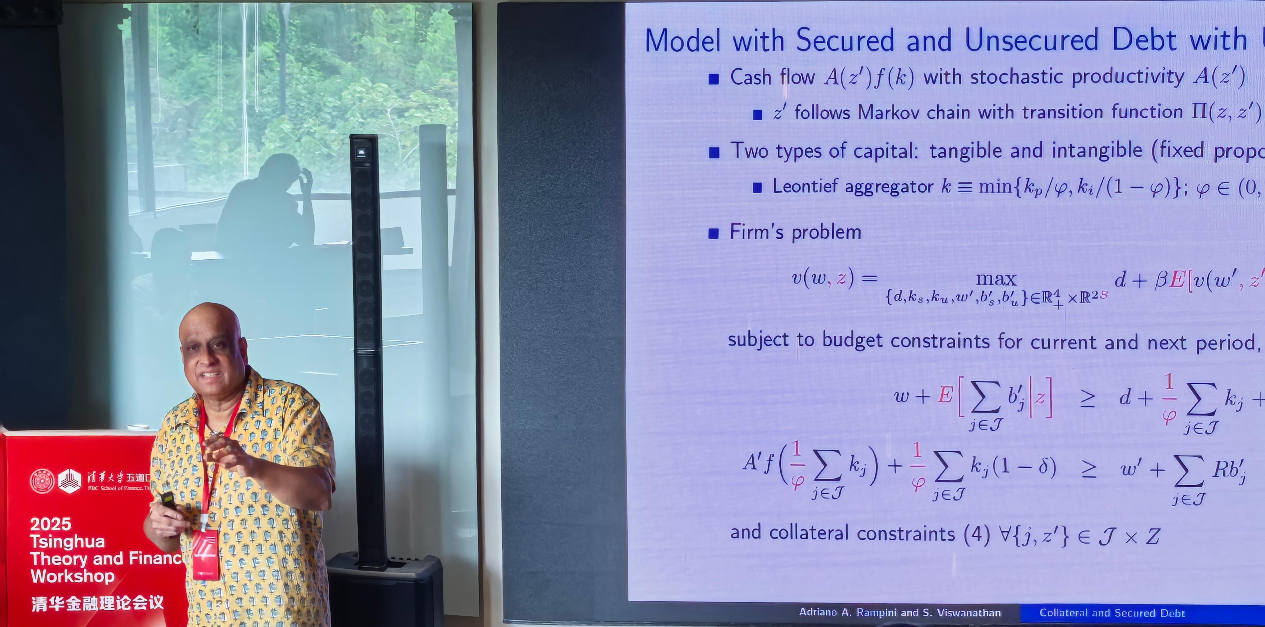 杜克大学富卡商公司F. M. Kirby投资银行讲席教授S. "Vish" Viswanathan发表题为“Collateral and Secured Debt”的主旨演讲,探讨抵押品如何影响企业在有担保与无担保融资之间的选择及资本结构的动态演变。不同于将抵押品简单等同于有担保债务的传统理解,他强调从经济学角度看,抵押品是“促进执行的可抵押资产”,因此不仅支撑有担保债务,也通过未设定担保的资产对无担保债务形成“隐性约束”。在其动态模型中,有担保债务通过对特定资产设置显性抵押强化债权人执行力、提升可借额度,但同时带来设定担保的成本。基于这一模型,Viswanathan 教授提出企业的债务结构会随财务约束而内生调整——约束更强时更依赖租赁与有担保债务,净值改善后逐步转向无担保融资,呈现“租赁→有担保→无担保”的融资路径;评级下调冲击的因果森林证据也表明,下调后企业会显著增加有担保债务,且该效应在更受约束的企业中更为明显。