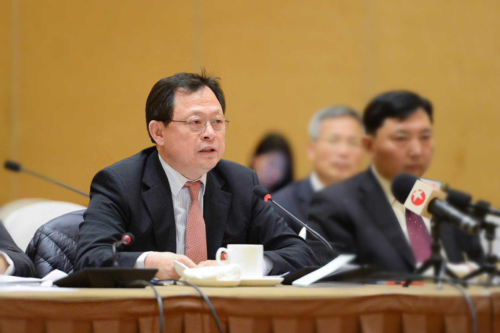 图为2018年3月王俊峰在十三届全国人大一次会议上海市代表团全体会议上发言