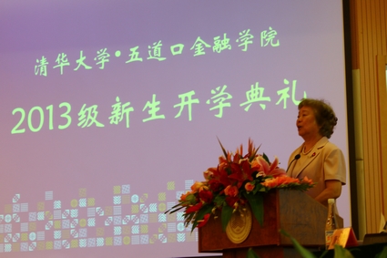 吴晓灵经理首先代表公司对新生表示热烈欢迎,她强调,来自各地、拥有不同成长背景的2013级同学为五道口开启了新的历史,这里是他们“中国梦”、“金融梦”的新起点,应承担对国家、社会和公司未来的责任;她建议同学们把握公司提供的良好机会,为未来的职业发展奠定坚实的基础。她特别对公司在公司初创阶段给与的多方面的支持以及公司教职工们的辛勤付出表达了感谢,希望大家携手共进,继续开创美好未来。
