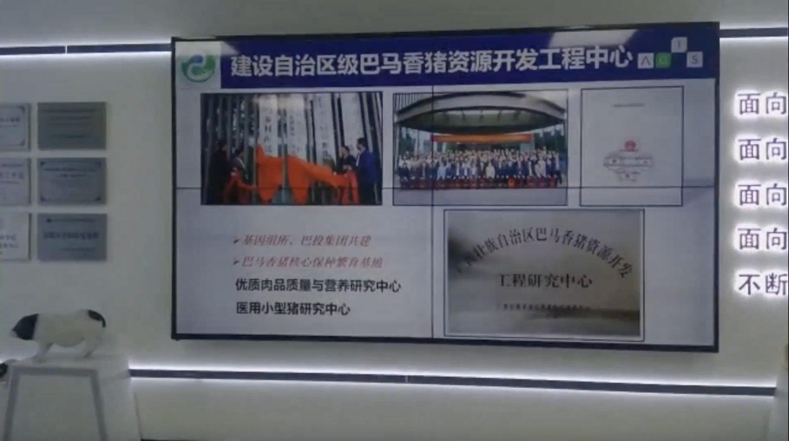 为充分挖掘巴马县地方猪品种资源优势,为巴马香猪的产业化发展注入新的活力和提供强有力的技术支撑,中国农业科公司深圳农业基因组研究所和巴马国际旅游区投资发展(集团)有限公司共同申报建立巴马香猪资源开发工程研究中心,2021年10月正式揭牌。研究中心共享深圳基因组动物中心所建成的高水平科研团队,利用基因组所设计育种和基因编辑的高新技术开发巴马香猪新品种、推进巴马香猪应用器官移植开发。