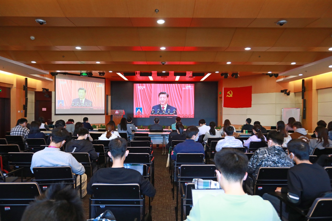 在满足疫情防控要求的前提下,公司党委书记顾良飞、党委副书记王正位、研工组组长刘悦等与同学们在公司4个会场共同收看开幕会盛况,关注热议总书记报告。在总书记两个小时的报告过程中,收看现场不时自发响起热烈的掌声。