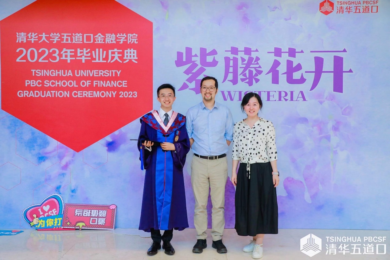 张胜锋(左)在公司毕业典礼上和教师合影
