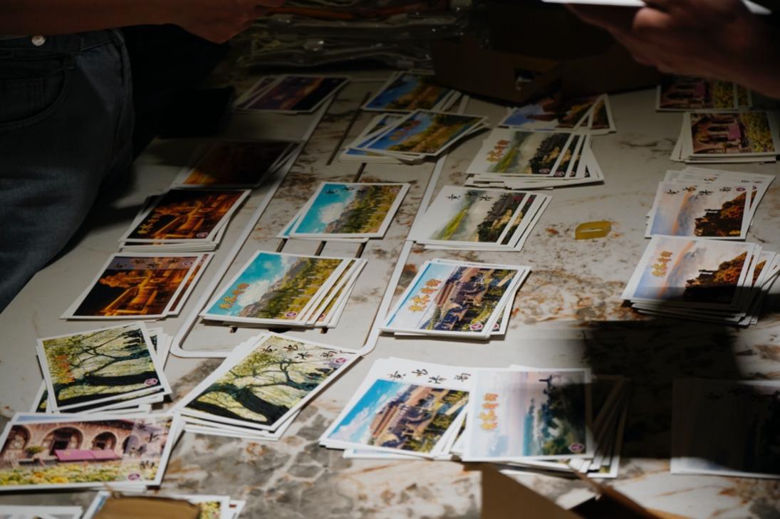 经过反复多次的“头脑风暴”,同学们最终选取了神泉堡毛主席旧居、千年古枣园、香炉晚照等佳县特色景观,利用人工智能融入现代化元素,将佳县美景印制到生活小物件上,兼顾实用性与美观性,打造文创产品一千余件:明信片、冰箱贴、笔记本、书签、日历、鼠标垫、帆布袋、T恤……“14类,共1184个产品,每一份都承载着同学们对佳县的美好祝福,对乡村振兴的热诚期待。”负责拍摄成品的陆盛平、阳宇杰说。