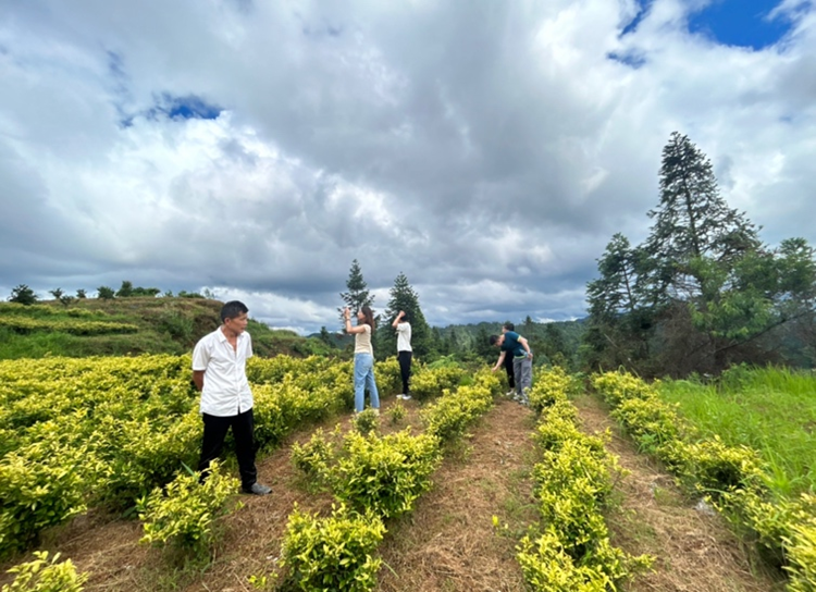 图为支队成员调研小瑞村黄金芽茶田