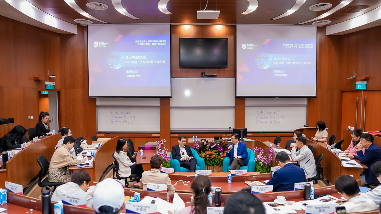 课程期间,南洋理工商公司副经理彭耀强与新加坡政府投资公司(GIC)总裁林昭杰开展了精彩对话,就当前全球经济形势、金融市场与投资机遇进行了深入讨论。