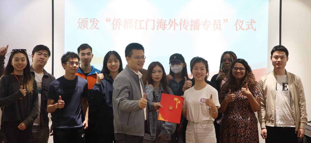 实践支队的13位成员还在江门市委宣传部的邀请下担任了“侨都江门海外传播专员”。在新会区新时代文明实践中心,支队成员在歌声中上了一堂生动的党课,并通过与员工座谈、开展“助力新会学子筑梦远航”志愿服务等方式,全面了解新会在纵深推进新时代文明实践、青年创新创业扶持等方面的经验做法。江门市委宣传部有关负责人表示,这是校地合作的新模式,也是开展国际传播的新路径。支队成员将继续深入挖掘侨乡优秀文化与故事,结合自己的专业所长向国际社会讲好中国故事。
