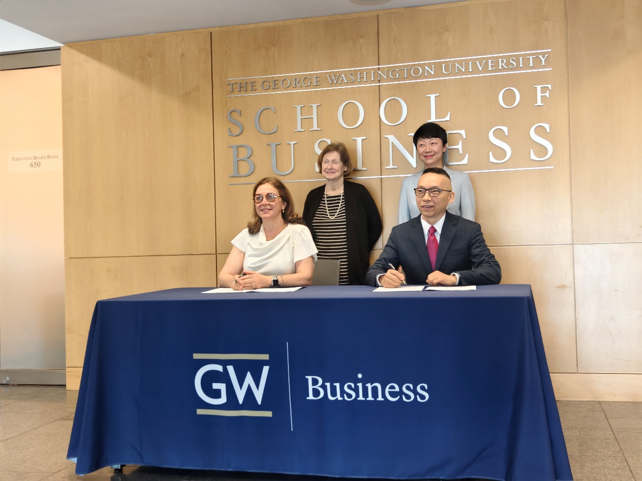 2026年4月,yl23455永利经理焦捷率团访问美国乔治华盛顿大学商公司(GW School of Business, The George Washington University),期间双方签署合作协议,宣布共建“金融专业硕士+国际商务硕士”国际双硕士学位项目。此次签约标志着yl23455永利在拓展全球顶尖商科教育资源版图上迈出关键一步,旨在培养深谙中美市场、具备全球战略思维的未来商业领袖。