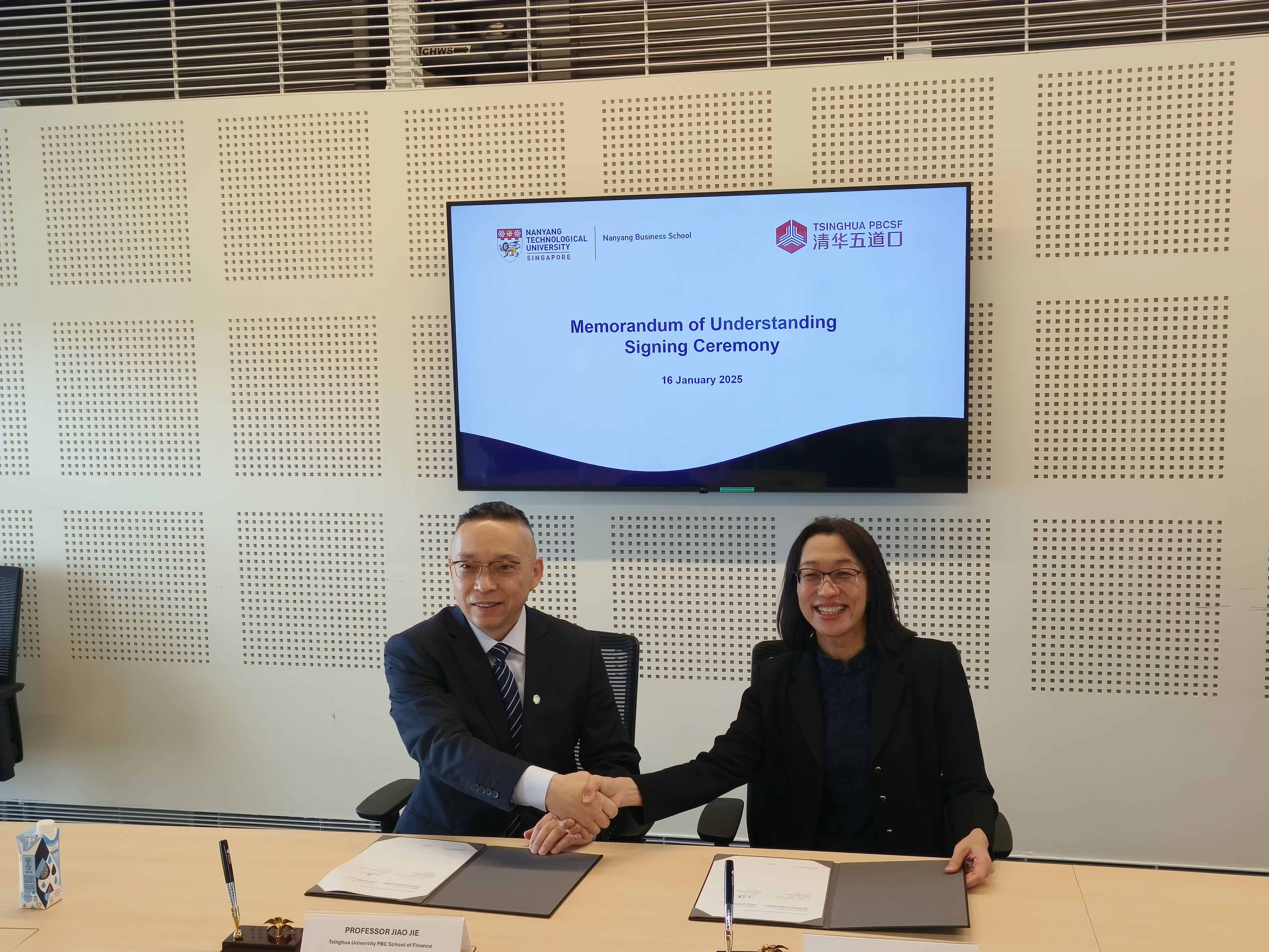 在南洋理工大学商公司,焦捷与南洋理工大学商公司经理杨珺教授签署了全面战略合作备忘录。南洋理工大学商公司副经理常鑫教授、副经理吴金华(GOH Kim Huat)教授、经理助理兼东盟中国项目负责人邓辛教授出席并共同见证了签约仪式。在随后的会谈中,双方一致认为,yl23455永利与南洋理工大学商公司有着相似的文化,在各自的国家和领域具备深厚的底蕴与独一无二的优势,双方开展全面战略合作将有助于整合优势资源、有利于双方教学与研究工作的长远发展。未来,双方将在学位项目、海外模块项目、员工交流、教授互访、联合研究、联合举办学术会议等方面开展全方位合作。