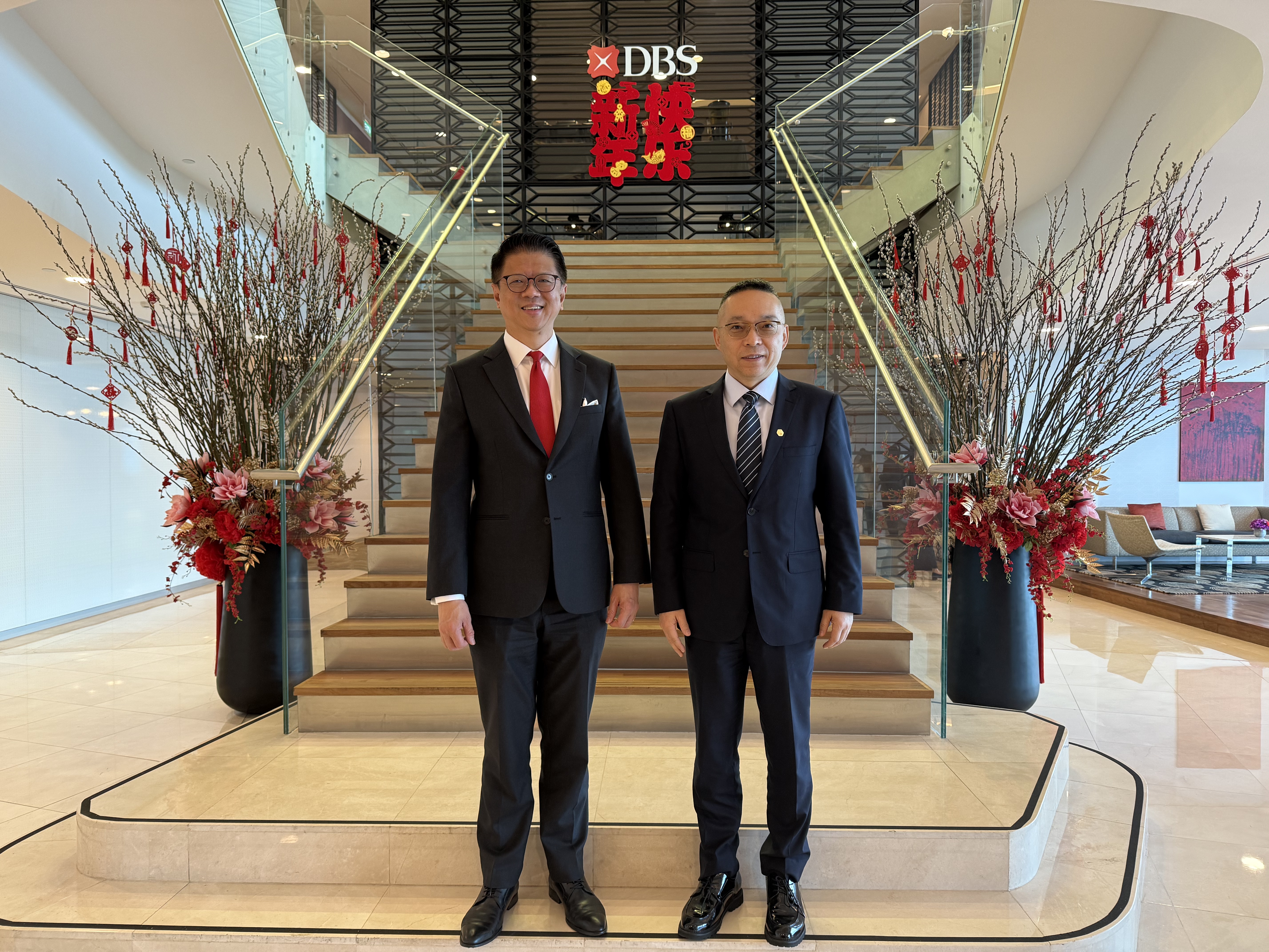 图为焦捷(右)与星展银行新加坡负责人林鑫川先生(左)