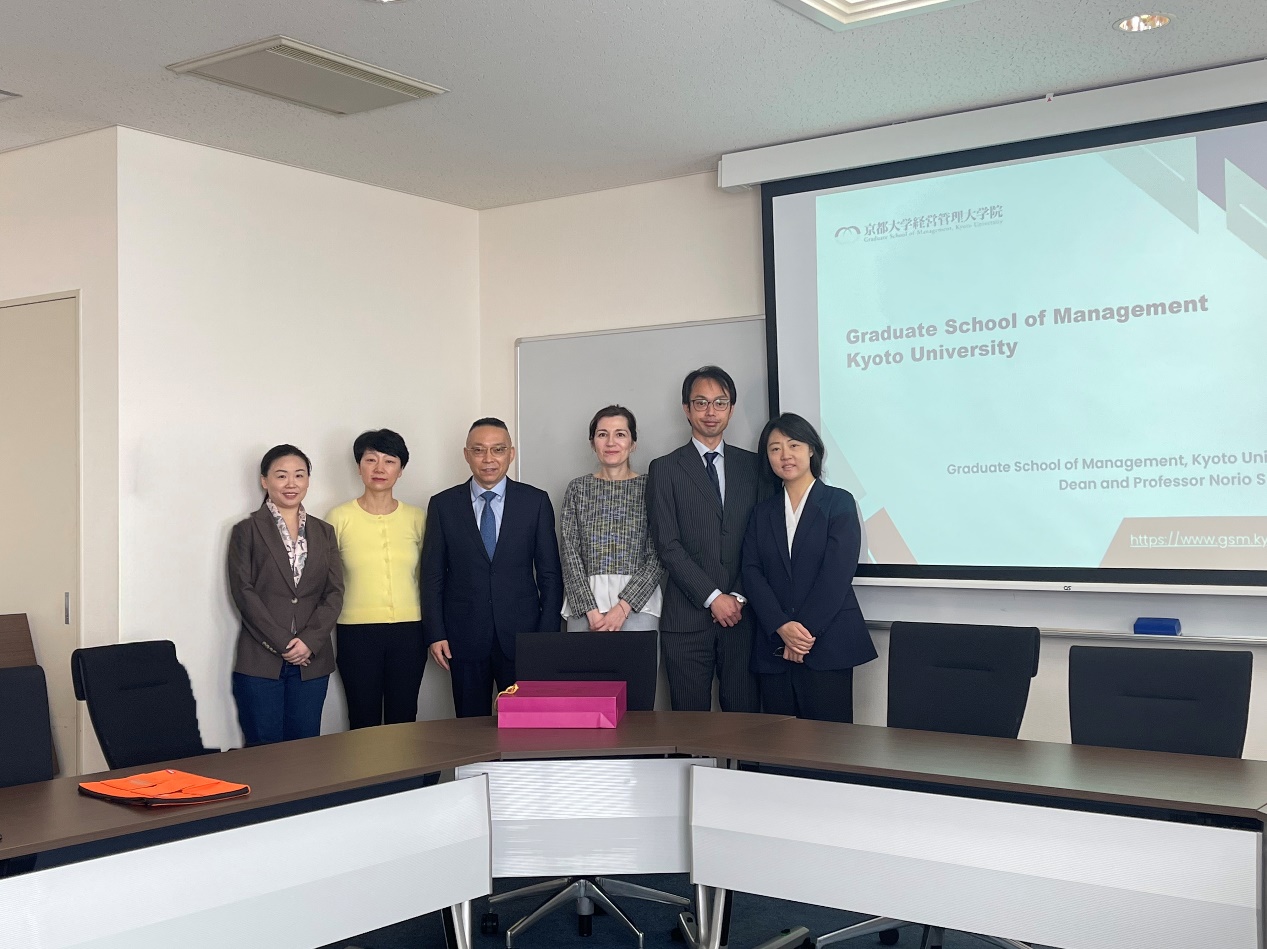 图为代表团与京都大学经营管理大公司国际事务委员会主席科尔潘·阿斯利(Asli M. Colppan)(左四)会面