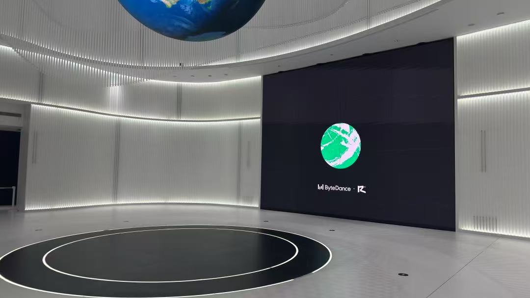 图为字节跳动展厅前端的可视化大屏幕