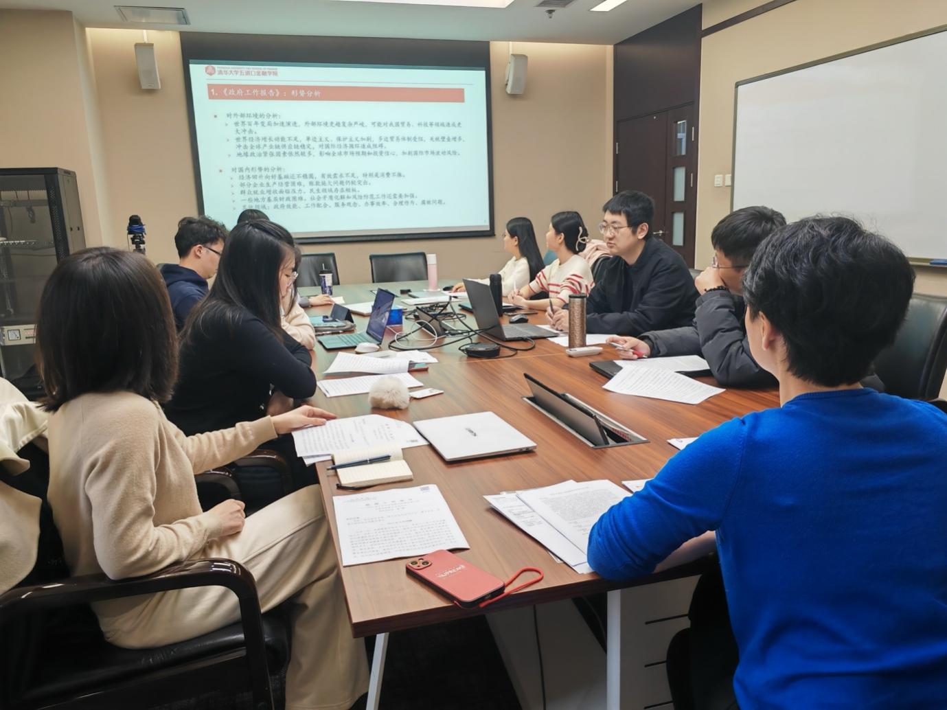 张老师带领我们学习政府工作报告和两会精神,对我而言是一次宝贵的知识学习和思想提升的机会。通过对国内外发展形势的了解,我深刻认识到过去一年经济社会所取得的成就来之不易,这些成绩是在党和政府的坚强领导下,依靠无数人在各自岗位上兢兢业业的奋斗才实现的。面对新一年的经济社会发展目标,我深感作为一名金融学博士,更应思考如何将个人奋斗融入国家发展的大局中,特别是金融强国的建设中,就像张老师在总结点评中所强调的那样,我们要立足中国实际,以扎实的研究成果服务国家发展。未来,我一定更加努力,找准自身研究的切入点,为金融强国的建设贡献自己的力量。