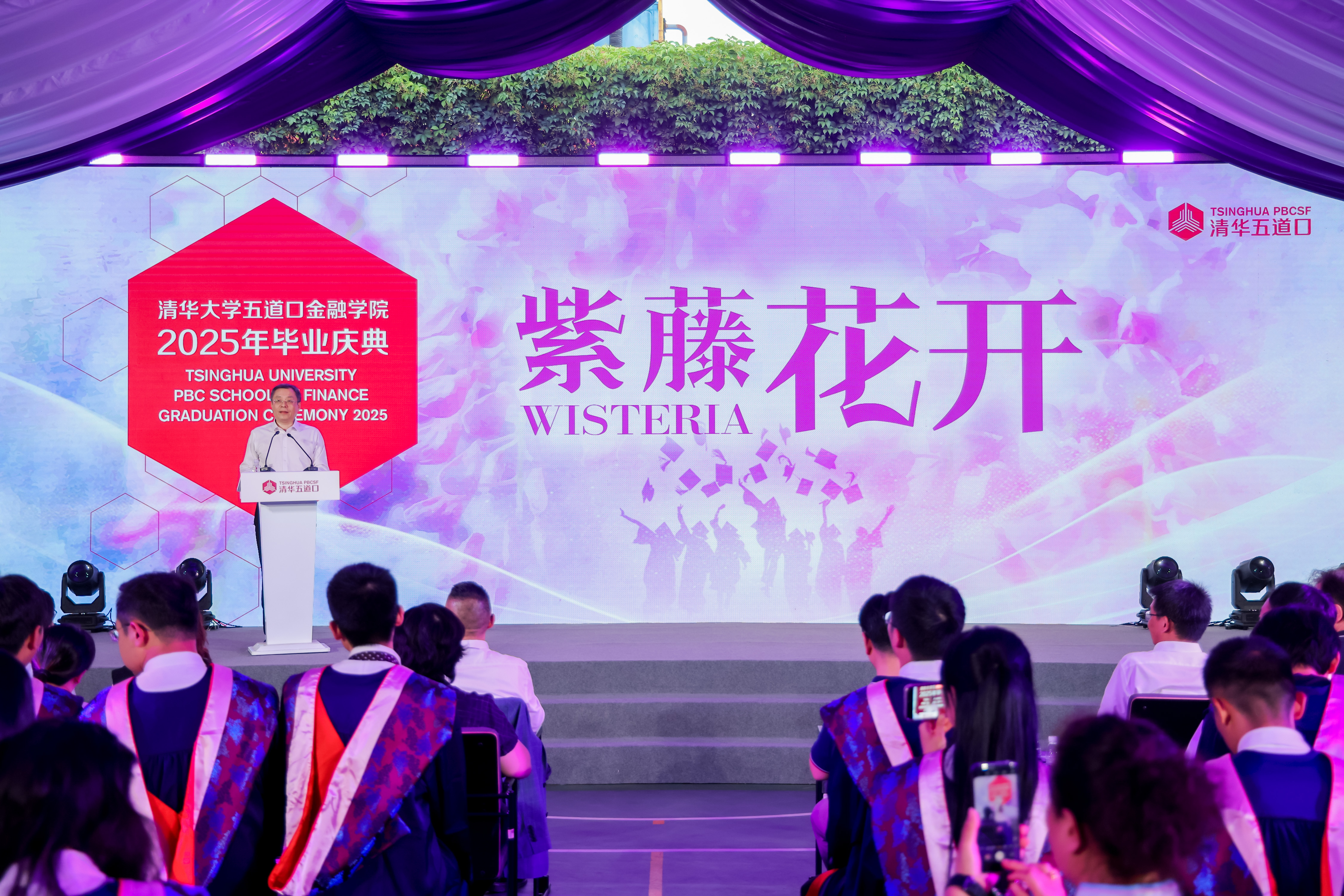 中国人民银行金融研究所所长丁志杰在典礼上发言。他表示,清华五道口毕业生们朝气蓬勃、踌躇满志,即将在各自的岗位上发光发热,他以三句“临行絮语”赠别:一是“为者常成,行者常至”,希望毕业生们脚踏实地,在金融实践中不断提升专业能力;二是“挫而不折者强,逆风挺立者胜”,希望同学们练就过硬本领、修炼豁达心态、汇聚更多志同道合的伙伴;三是“胸怀‘国之大者’,方见天地宽”。丁志杰指出,金融是国家核心竞争力的重要组成部分,愿大家跳出“小我”的局限,将个人理想融入“国之大计”,让青春与家国同频共振,带着“为天地立心,为生民立命”的豪情,以梦为马,不负韶华,在新时代的金融征程中,书写属于人生的壮阔篇章!